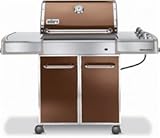 Weber Genesis EP-310 LP, Premium Gas Grill, Copper, Features An Enclosed Cart With Corresponding Painted Steel Doors, Stainless Steel Handles & Accent Colored Painted Side & Rear Panels, Grills Have Accent Colored Painted Steel Frame & A Porcelain Enameled Shroud With A Center Mounted Thermometer & Accent Colored Painted Cast Aluminum End Caps, Cooking System Is Rated At 42,000 BTUs, Includes 3 Seamless Stainless Steel Burners & A Crossover Ignition System, Cooking Grates Are 7MM Diameter Stainless Steel Rods With Stainless Steel Flavorizer Bars, Primary Cooking Area Measures 507 SQIN, Warming Rack Area Measures 130 SQIN, Giving A Total Cooking Area Of 637 SQIN, Other Features Include 6 Tool Holders, Precision Fuel Gauge, 2 Heavy Duty Front Locking Casters & 2 Heavy Duty Back Swivel Casters, Tank Not Included, Limited Warranty, Weber Cookbook Included, Premium Features Include Stainless Steel Grates & Stainless Steel Flavorizer Bars.