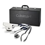 Grill your favorite meats and vegetables using these 5 dishwasher-safe cooking tools: Professional Grill Tongs, the Chef's Fork, the Silicone Basting Brush, the Chef's Spatula, and the Master Cleaning Brush. All durable stainless-steel tools are designed with comfortable Santoprene rubberized grips and large ergonomic handles that feel good in your hands. Steaks, fish, chicken, vegetables and other foods are easily grilled using the Cuisinart Champion Grill Set. When cooking is complete, store the tools in the included deluxe storage case.