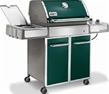 Weber Genesis EP-320, LP, Premium Gas Grill, Dark Green, Features An Enclosed Cart With Corresponding Painted Steel Doors, Stainless Steel Handles & Accent Colored Painted Side & Rear Panels, Grills Have Accent Colored Painted Steel Frame & A Porcelain Enameled Shroud With A Center Mounted Thermometer & Accent Colored Painted Cast Aluminum End Caps, Cooking System Is Rated At 42,000 BTUs, Plus 12,000 BTU Per HR Input Flush Mount Side Burner, Includes 3 Seamless Stainless Steel Burners & A Crossover Ignition System, Cooking Grates Are 7MM Diameter Stainless Steel Rods With Stainless Steel Flavorizer Bars, Primary Cooking Area Measures 507 SQIN, Warming Rack Area Measures 130 SQIN, Giving A Total Cooking Area Of 637 SQIN, Other Features Include 6 Tool Holders, Precision Fuel Gauge, 2 Heavy Duty Front Locking Casters & 2 Heavy Duty Back Swivel Casters, LP Tank Not Included, Limited Warranty, Weber Cookbook Included, Premium Features Include Stainless Steel Grates & Flavorizer Bars.