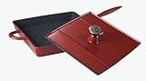 A versatile performer, this panini grill and press set in chianti red from Mario Batali is perfect for grilling Italian panini sandwiches made thin and crisp with the heavy press/lid as well as searing steaks, chicken and fish filets. The pan's cast iron core guarantees even heat distribution, so your food won't burn, and it's been given a matte enamel coating on the interior of the pan that requires no seasoning or special care. Oils used and created when cooking penetrate the pores of the matte enamel to create a natural, smooth, nonstick surface, which provides easy food release and quick cleanup. The grilling surface measures 11 by 11 inches. The heavy lid is accented with a cast stainless steel knob, and it's further complemented by a helper handle for easy lifting and transport to the table. Safe for gas, electric and ceramic-top ranges. Hand wash only. Backed by a limited lifetime warranty.
