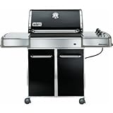 Weber Genesis EP-310, Natural Gas Premium Grill, Black, Features An Enclosed Cart With Corresponding Painted Steel Doors, Stainless Steel Handles & Accent Colored Painted Side & Rear Panels, Grills Have Accent Colored Painted Steel Frame & A Porcelain Enameled Shroud With A Center Mounted Thermometer & Accent Colored Painted Cast Aluminum End Caps, Cooking System Is Rated At 42,000 BTUs, Includes 3 Seamless Stainless Steel Burners & A Crossover Ignition System, Cooking Grates Are 7MM Diameter Stainless Steel Rods With Stainless Steel Flavorizer Bars, Primary Cooking Area Measures 507 SQIN, Warming Rack Area Measures 130 SQIN, Giving A Total Cooking Area Of 637 SQIN, Other Features Include 6 Tool Holders, Precision Fuel Gauge, 2 Heavy Duty Front Locking Casters & 2 Heavy Duty Back Swivel Casters, Includes 10' Flexible Hose, Limited Warranty, Weber Cookbook Included, Premium Features Include Stainless Steel Grates & Stainless Steel Flavorizer Bars.